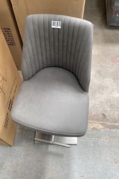Italin inspired, Swivel Bar Stool in grey fabric. RRP £239. 42W x 50D x 96. Height adjustable. Guests and family members alike will love this stylish and very comfortable swivel bar stool. The swivel base makes it so easy to take a seat at a bar table or counter top. Swivel bar stool is a stylish addition to your bar table dining set. Elegant contemporary style. Grey fabric upholstery with understated vertical stitching. Pedestal base with footrest has a brushed stainless steel finish. Height adjustable. See Product on Official Website