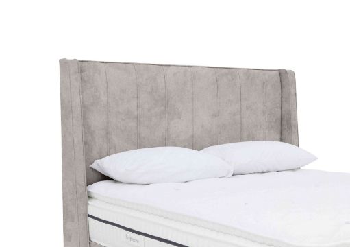 Sleepeezee 5’ Davos Floor Standing Headboard. King Size. Tweed Biscuit. RRP £849. Transform your bedroom with this lovely floor standing headboard, handmade by Sleepeezee. Combining traditional and modern design elements, it makes a wonderful focal point. Sophisticated style that’s truly timeless. Handcrafted in the UK, a modern interpretation of a classic winged headboard. Elegant fluting. This floor standing headboard is fully upholstered from top to floor.