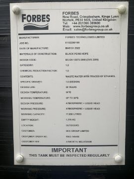 - The tank is fabricated using black pigmented High Density Polyethylene (HDPE), PE100 grade to produce a highly corrosion resistant tank.