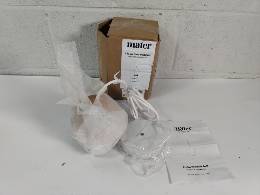 An as new Mater Luiku base pendant 'ball' designed by Maija Puoskari, Natural (REF: 02901).