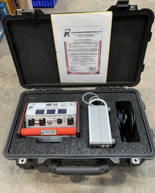 A pre-owned Cine Power International Super Power HD-30 Ni-MH battery and charger in Peli 1510 case.