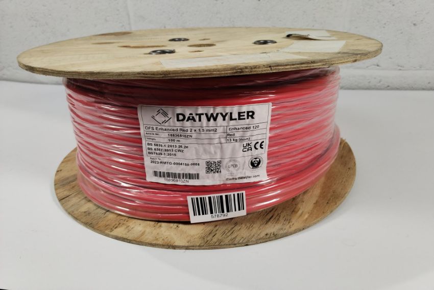 A reel of Datwyler DFS enhanced fire safety red cable -100m (18836810ZN).