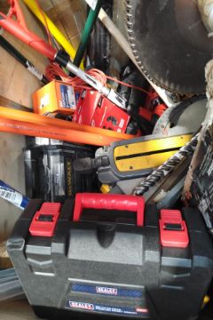 Assorted new and preowned tools, hardware and related. (wooden create not included)