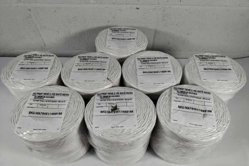 Eight white polypropylene twine spools 2.1kg (450m per kg) (MA76451).