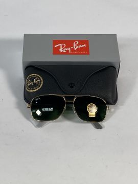 A pair of Ray-Bans Square sunglasses in polished gold and black with G-15 green classic lenses (RB4855).
