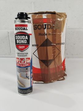 Twelve cannisters of as new Soudal Souda Bond construction PU adhesive, 750ml (EAN: 5411183186903, EXP: 01/27).