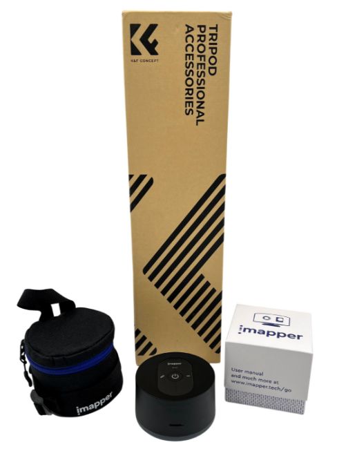 As new iMapper Laser Measurement Tool (M/N: FMP02-2) with iMapper carry-on pouch and K&F Concept KF09.101V1 Tripod (PLEASE NOTE THIS ITEM MAY NOT COME WITH ANY NECESSARY LICENCES/SOFTWARE INCLUDED AND REGISTRATION STATUS IS UNKNOWN- PLEASE DO YOUR OWN DUE DILIGENCE BEFORE BIDDING. SERIAL NUMBER AVAILABLE ON REQUEST. SOLD AS SEEN).