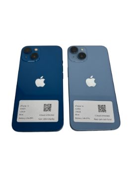 Pre-owned Apple iPhone 14 A2882 256GB (Rear camera not functional) and an Apple iPhone 13 A2633 128GB (Non OEM display) (Both iCloud unlocked, scratched screen glass, sold as seen).
