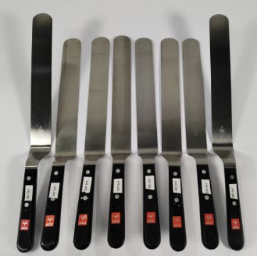 Eight Wusthof cranked narrow blade spatulas 250mm (4437) (over 18s only).