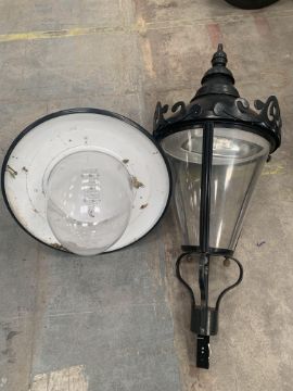Four pre-owned medium sized Victorian style lantern tops and One dome lamp top.