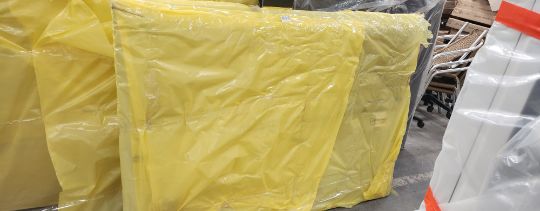 Super King Resin & Grey Fabric designer headboard. RRP £1,790. Attaches easily to divan beds. Very modern and stylish. Some marks where packaging split.