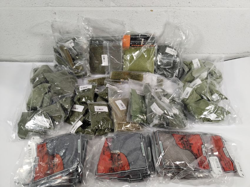 An assorted lot of as new Model Shop Terrain/Scenic Materials, Hedging, Grass, Meadows and more (approximately 100 items).