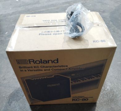 An as new Roland KC-80 compact and versatile 3 channel 50w mixing keyboard amplifier, sealed, boxed. (stock image)