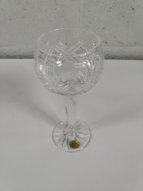 Four boxes of six as new Loretta hock, tall stem English crystal glasses - 14cl (may show signs of long term storage).