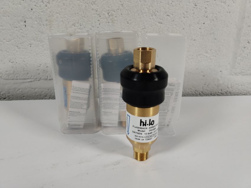 Three as new Hi-Lo Flashback Arrestor Resettable, Oxygen, 15 PSI (DOM: 2025, Model: DS2000).