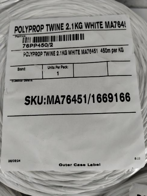 Eight white polypropylene twine spools 2.1kg (450m per kg) (MA76451).