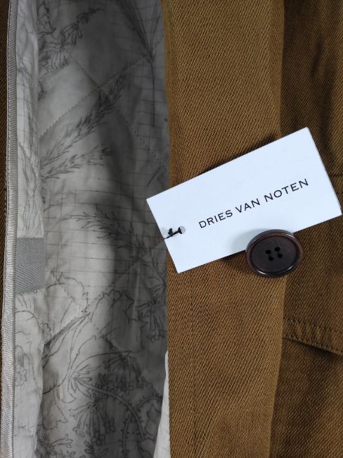 A Dries Van Noten jacket, light brown with tag, patterned inner lining (aw23-24 restonas rev 7251 105 umber).