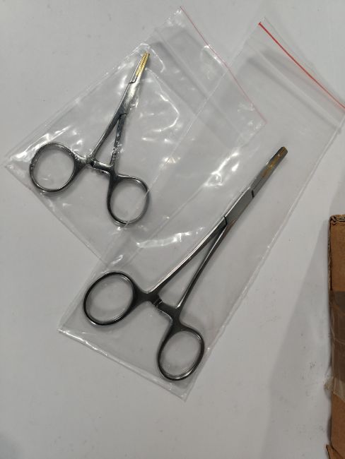 Seventy five straight small brass pliers/clamps without teeth and 50 brass pliers/clamps, all as new.