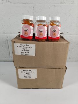 Two boxes of twelve as new Chapter One dietary supplement omega gummies (60 gummies per bottle, EXP: 2025-04).