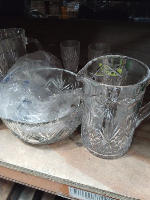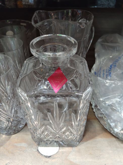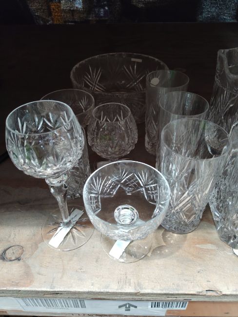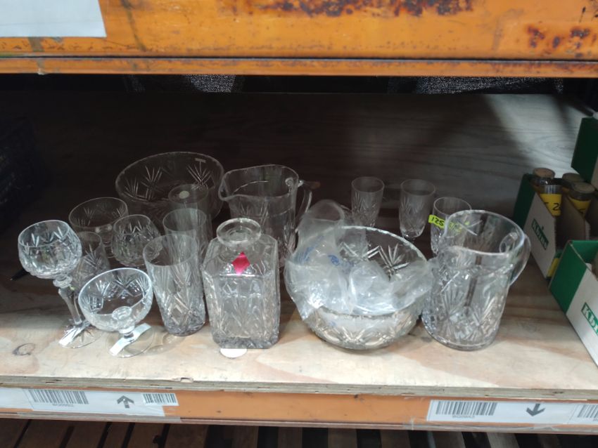 Sixteen items of assorted crystal glassware.