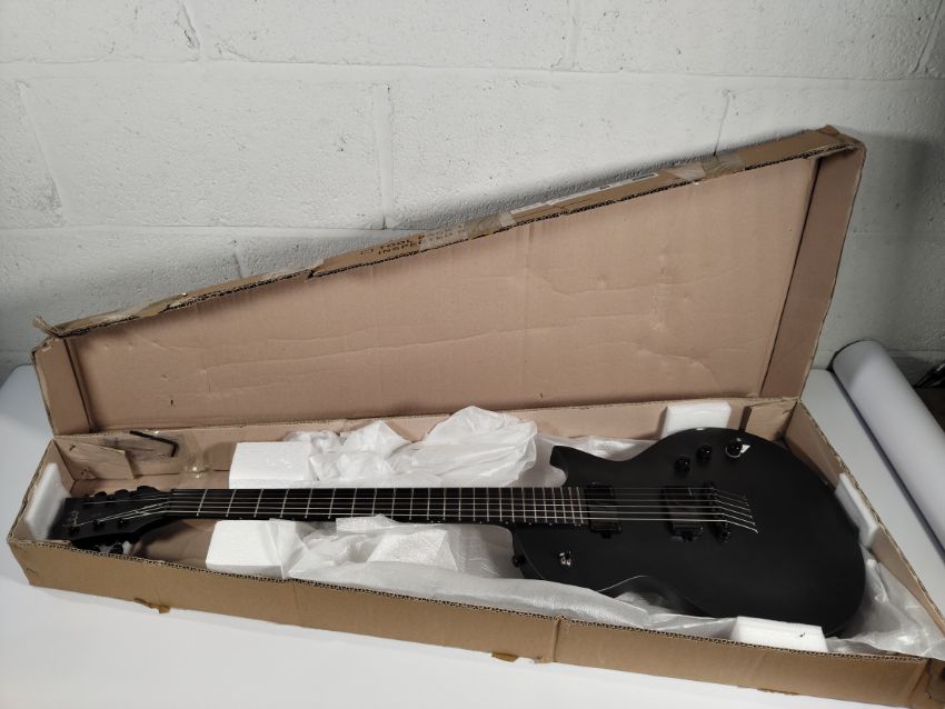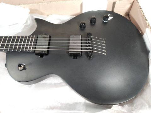 A ESP ltd EC1000 baritone electric guitar in charcoal metallic satin colorway, minor damage to base paintwork, boxed. (LEC1000BCMS)