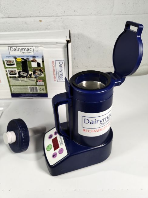 A Dairymac digital superthaw semen flask with flip lid, rechargeable, boxed.
