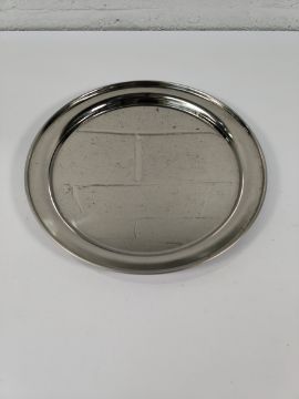 Fifteen as new stainless steel salvers, round, narrow rim - 300mm (may show signs of long term storage).