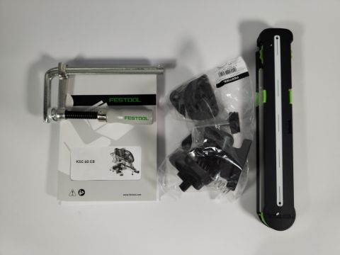 An as new Festool Kapex Sliding Compound Mitre Saw, KSC 60 EB-Basic, 18/36V, 216mm (577775) (body/chip collection bag only).