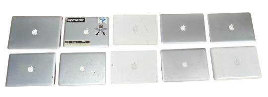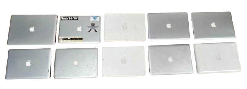 Assorted pre-owned Apple MacBooks: 5 × A1278, 1 × A1286, 2 × A1181, 2 × unknown model (Drives removed, sold as seen for parts only).