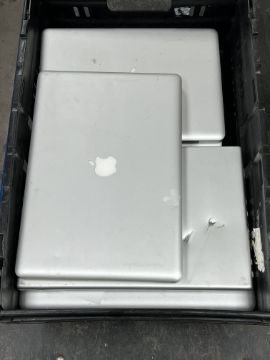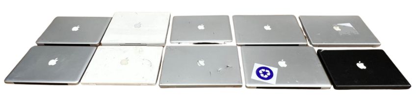 Assorted pre-owned Apple MacBooks: 3 × A1278, 2 × A1286, 2 × A1181, 1 × A1150, 1 × A1046, 1 × A1055 (Drives removed, sold as seen for parts only).