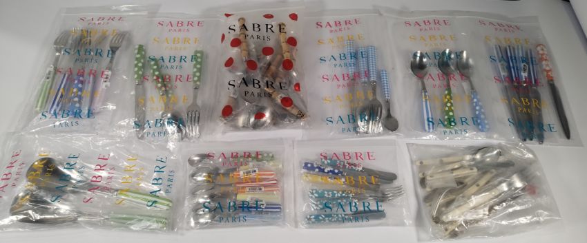 A quantity of as new Sabre Paris fine crafted cutlery - various designs and types - forks, spoons, knives (over 18s only).