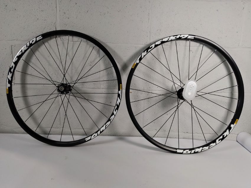 A boxed as new Mavic Crossride FTS-X wheel set in black (M50421F and M50421R).