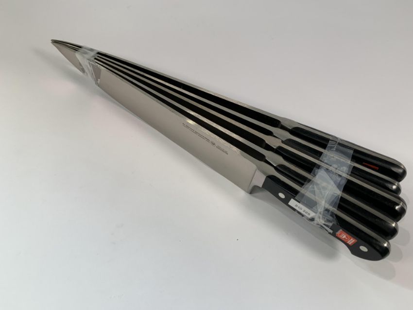 Five Wusthof French Cooks heavy bolstered knives 320mm, may have slight marks from long term storage (4582) (over 18s only) (tray not included).
