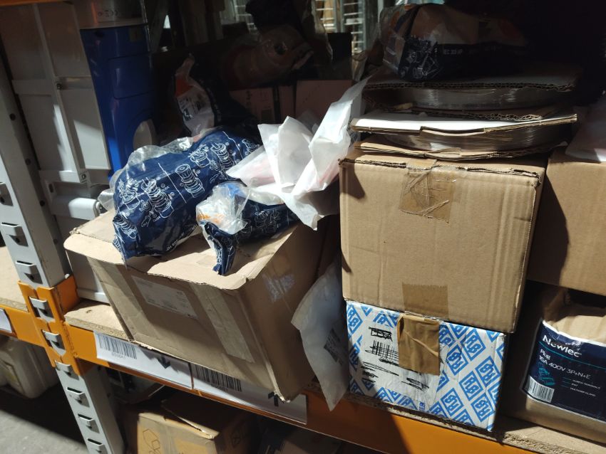 A large quantity of assorted electrical and plumbing items (on two shelves).