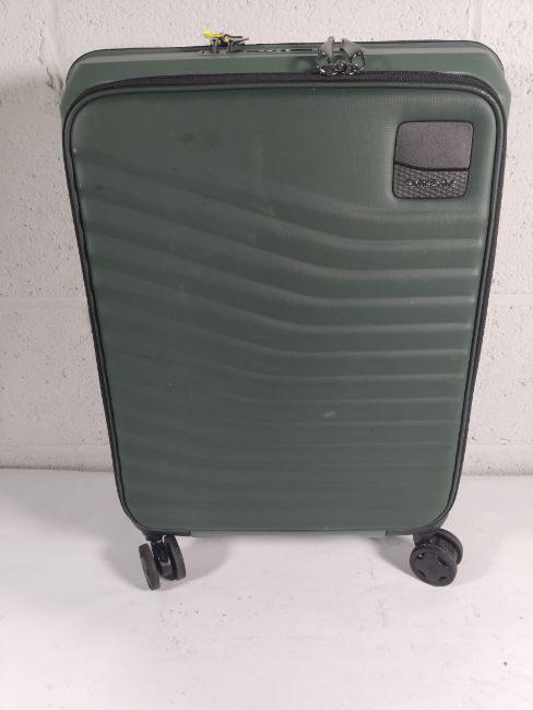 A pre-owned Samsonite Upscape 55cm expandable spinner cabin suitcase.