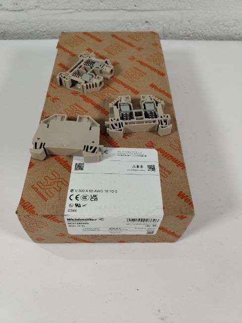 Thirteen boxes of 50 as new Weidmuller DIN rail terminal blocks WDU 10 SL (9537 480000).