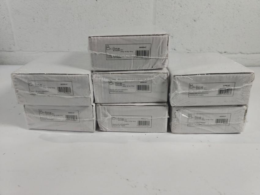 Seven as new boxes of Bis-line by Schrader extra thin adhesive car/van balance weights (REF: 66996-67).