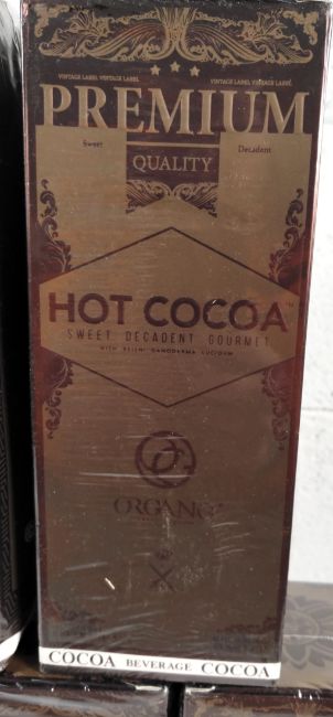 Seven Organo Premium Hot Cocoas packs, 480g/15 sachets per pack, sealed (some minor damage to packaging).