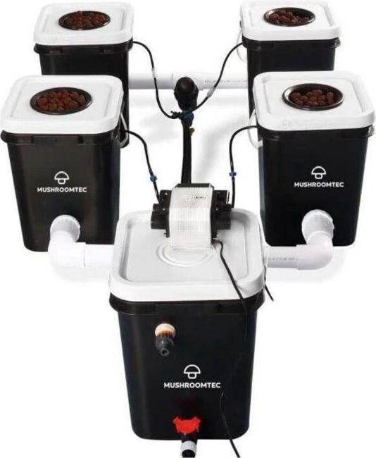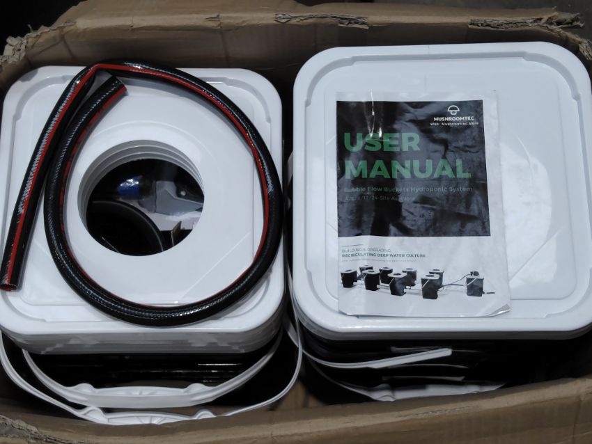 An as new Mushroom Tech Bubble Flow Buckets Hydroponic System - 4 Buckets (stock Image).