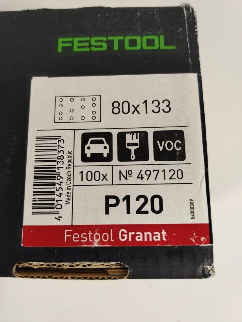 Three packs of Festool abrasives 80 x 133, P120 GR/100 Granat, boxed (100 pieces per pack) (497120).