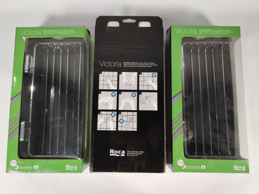 Three as new Roca Victoria Wire Storage Baskets, 300mm (A816688001).