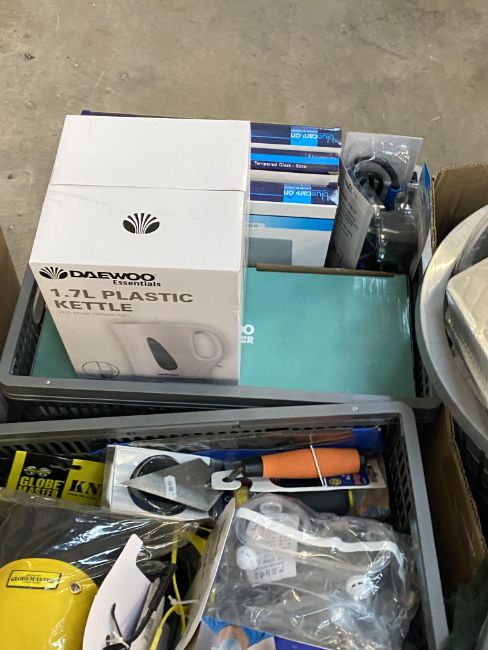 Three pallets of assorted household and garden related items.