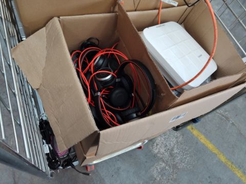 A quantity of assorted cables, conference call products and HP phones (Cage not included).