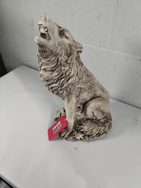 A Howling Wolf stone garden ornament.