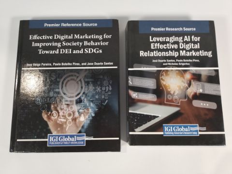 Two IGI Global Premier Research Source to include 1x Leveraging AI for Effective Digital Relationship Marketing (hardcover) and 1x Effective Digital Marketing for Improving Society Behaviour Toward DEI and SDGs (hardcover). Both books are in good condition with minor damage to the hardcover.