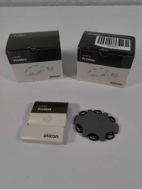 Two boxes of ten Oticon wax protection sets, Prowax Minifit (6 per set).