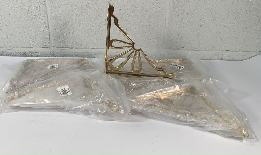 Six polished brass large flower brackets 234mm per bracket.