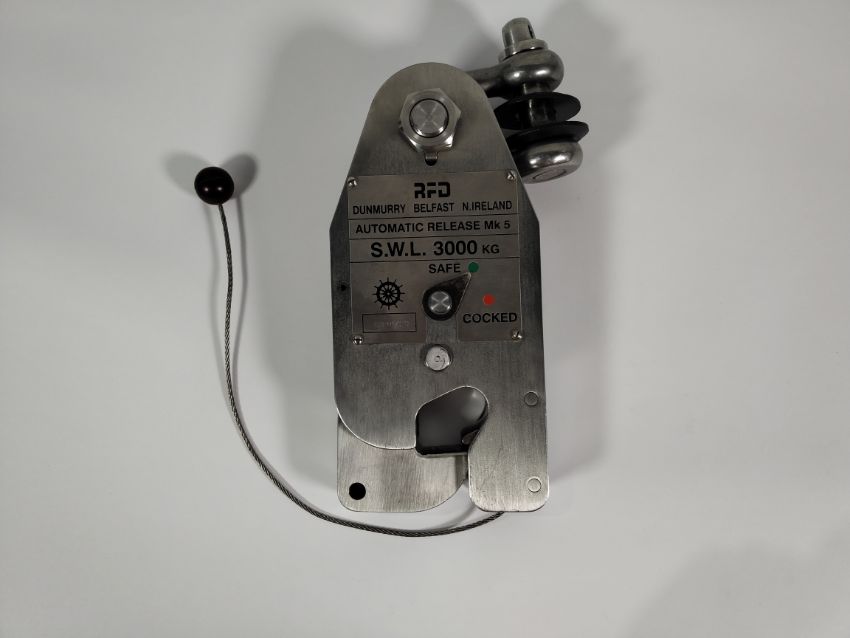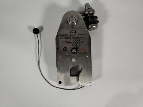 A Rescue Crane Hook RFD MK5 and Shackle (RFD PART No. 42050001).