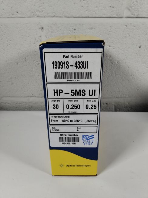An as new Agilent J&W Advanced Capillary GC Columns, 19091S-433UI, Length 30m, Diameter 0.25mm, film 0.25 ?m.
