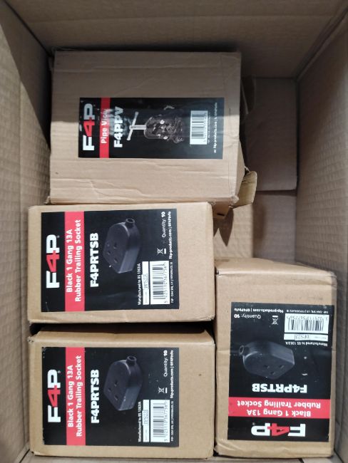 Four assorted F4P related items - A pipe vice (F4PPV) and three 1 gang rubber trailing sockets (F4PRTSB).